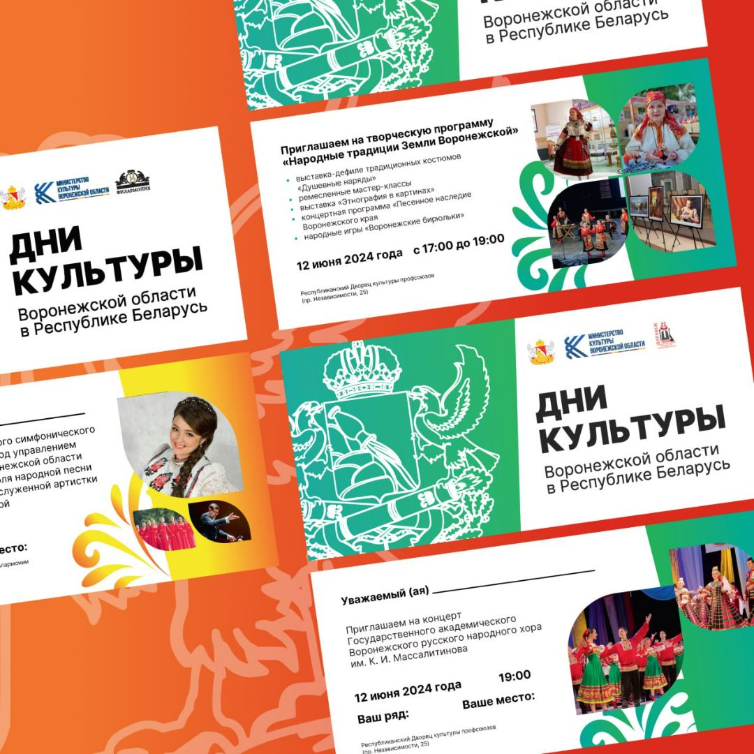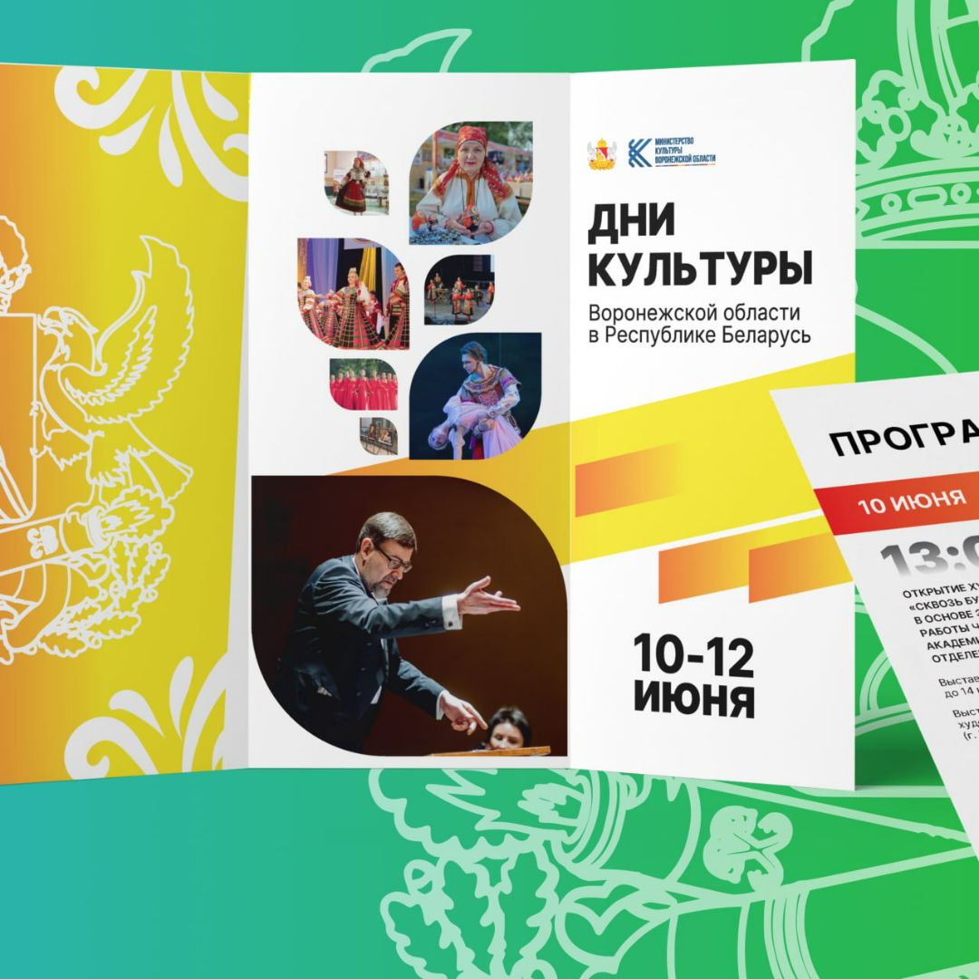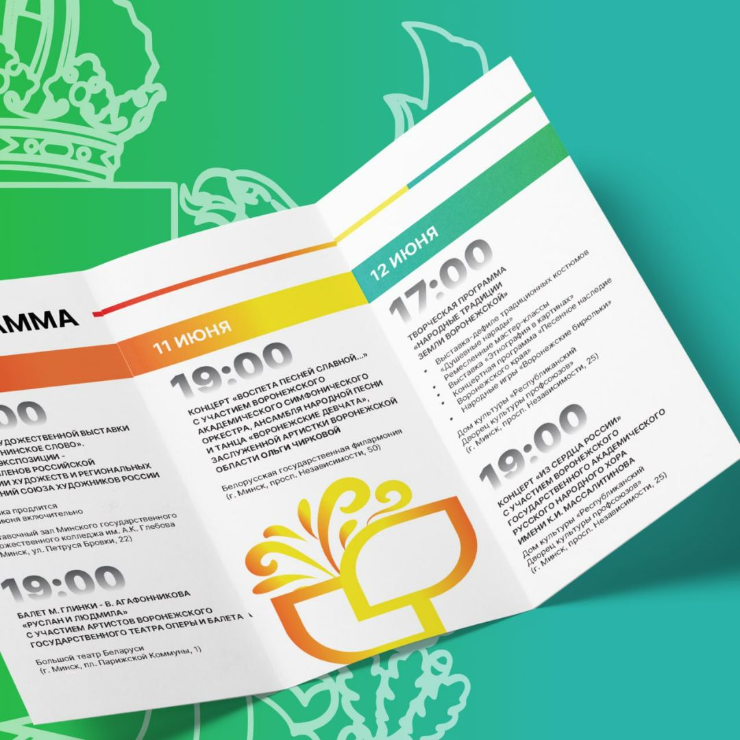 Создать целостный визуальный стиль (логотип, афиши, сувениры), объединяющий элементы культурного наследия Воронежской области и Беларуси.