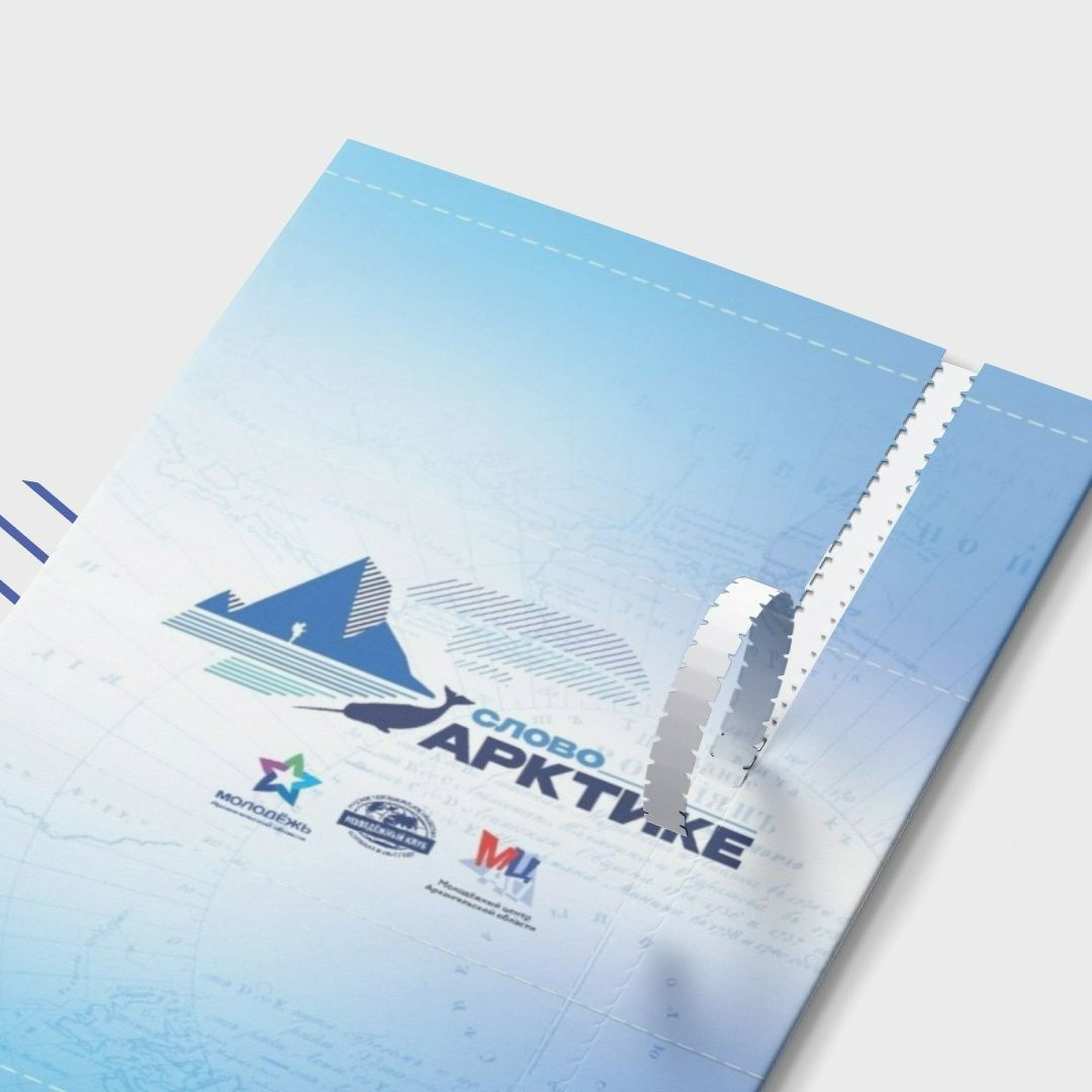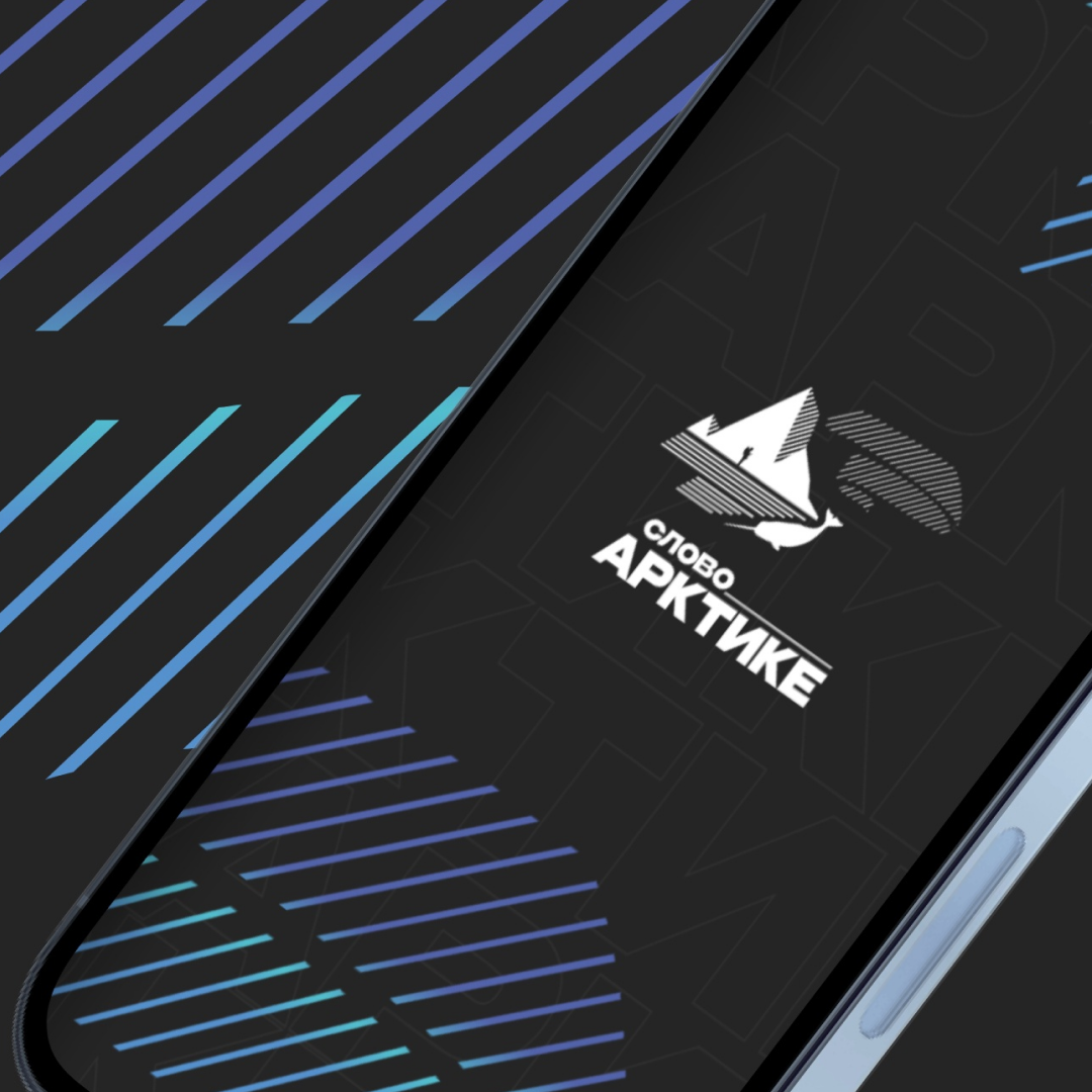 Создать лаконичный и символичный логотип, объединяющий стилизованное написание "Слово Арктике" с элементами арктической тематики (льдины, северное сияние) и экологическим посылом.