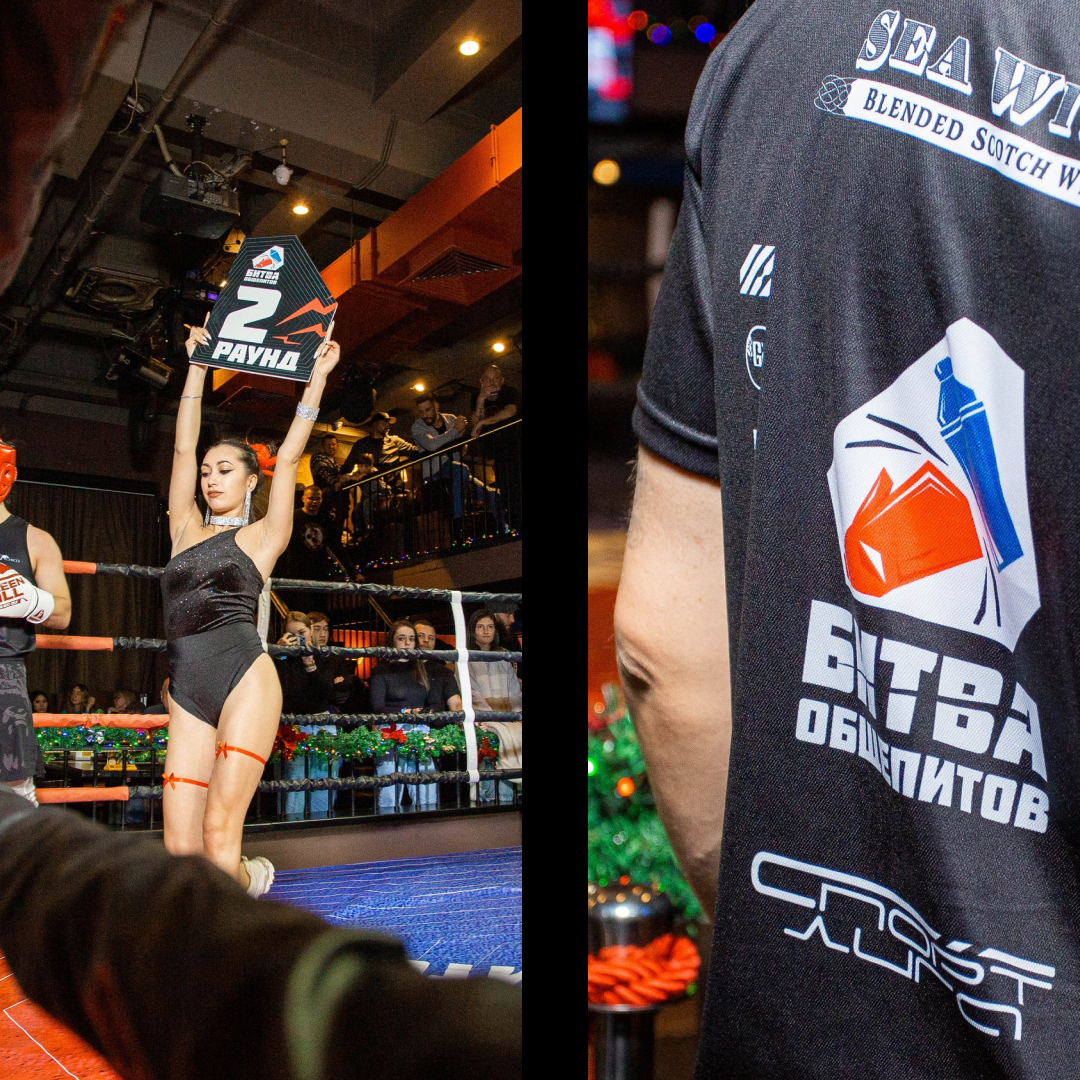 Создать динамичный и яркий визуальный стиль, объединяющий элементы бокса (перчатки, ринг) и общепита (кухонная утварь, еда), с акцентом на драйв и командный дух.