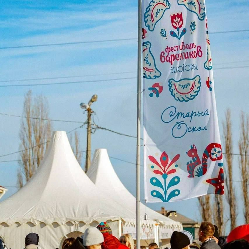 Брендинг выполнен в теплой цветовой палитре (бежевый, бордовый, зеленый) с использованием стилизованных вареников, традиционных узоров и элементов пшеницы, что передает аутентичность, радость и связь с гастрономическими традициями Белогорья.